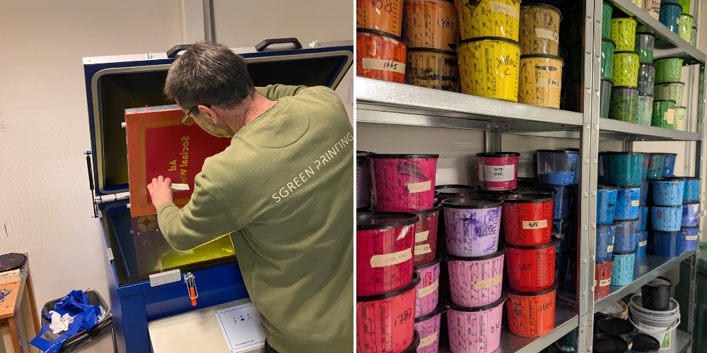 Wij werken nauw samen met Sgreen Printing, de duurzame drukkerij binnen onze groep. Met zeefdruk en waterbasis-inkt realiseren zij bedrukking op verantwoord geproduceerd textiel, zoals kleding, tassen en andere duurzame textielproducten.