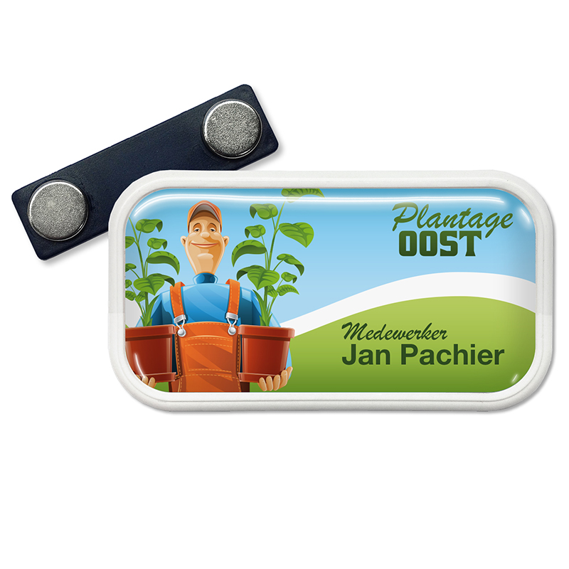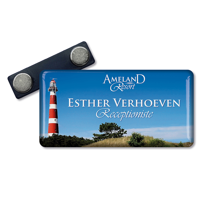 De badge is pinloos, kan gemakkelijk aangebracht worden.