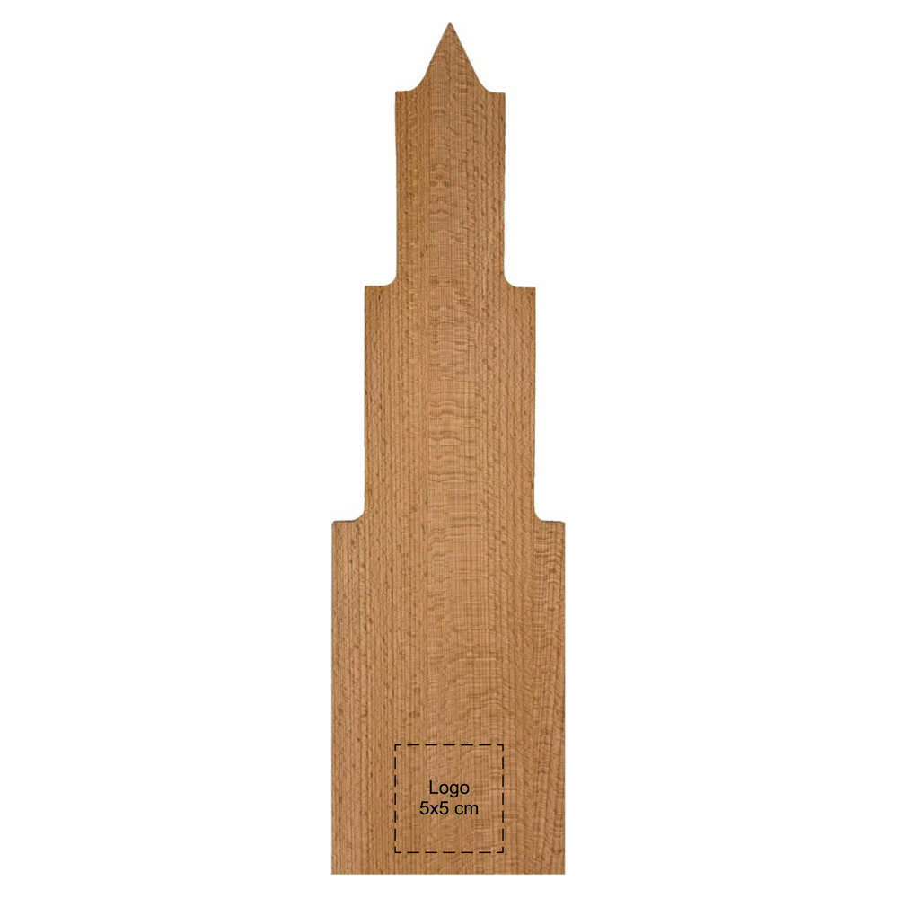 Een borrelplank in de vorm van de Utrechtse domtoren is een echte eyecatcher voor iedere borrel of feestje. Deze borrelplank is gemaakt van hoogwaardig beukenhout en heeft een afmeting van 55 bij 12 cm. Het unieke ontwerp van deze borrelplank maakt het een perfect cadeau voor iedereen die houdt van de stad Utrecht en gezelligheid.