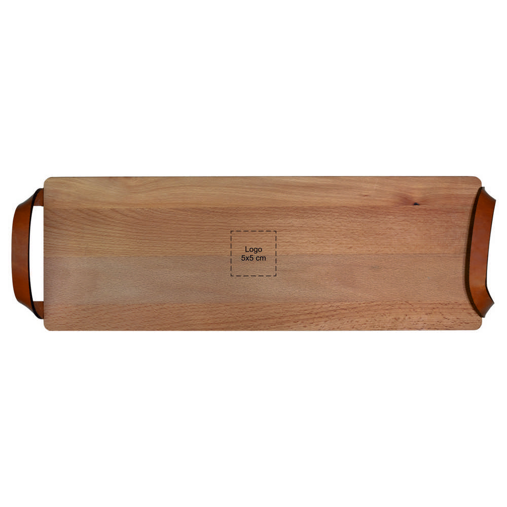 Plank met leren handvaten beuken 48x17 cm