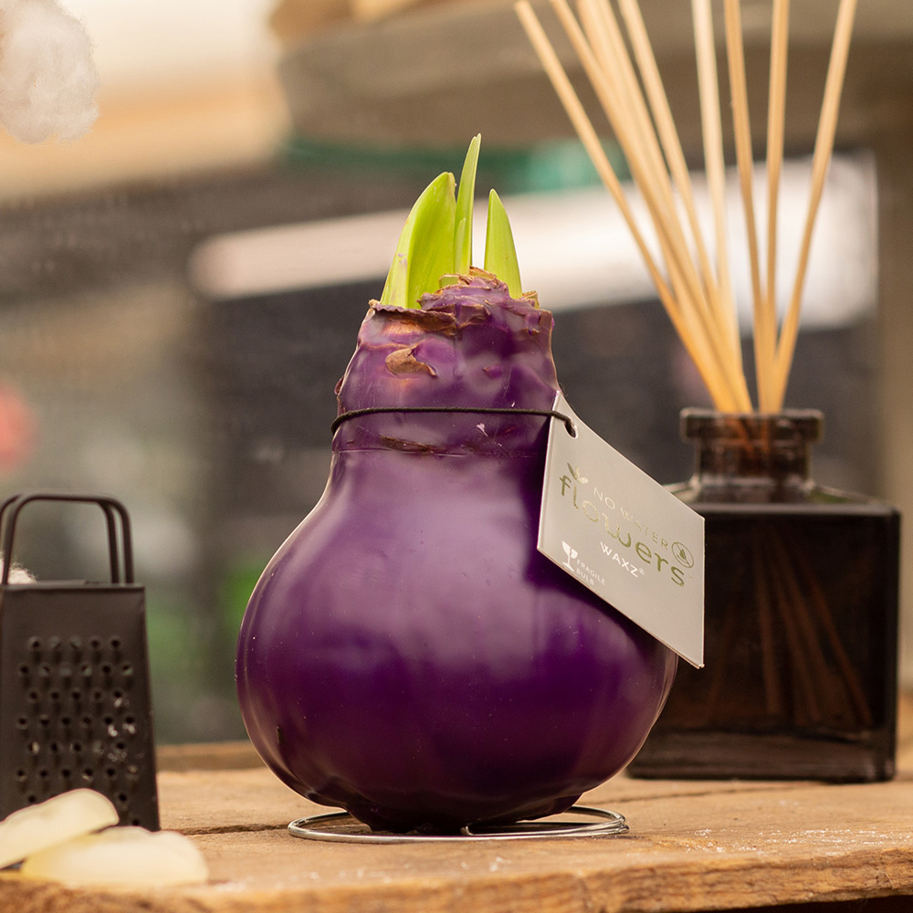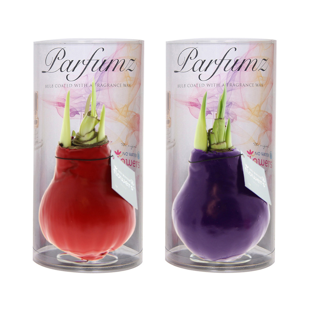 No Water Flowers® Parfurmz zijn een geurend, groeiend en bloeiend geschenk. De geurige waxlaag van de No Water Flowers® Parfumz verspreidt een heerlijke geur, die zowel visueel als aromatisch je huis verfraait. Zo zijn ze er in een lavendel geur (paars) en een cherry geur (rood). Deze levende No Water Flowers® staan bekend om de unieke handgemaakte wax amaryllisbollen. Bij de Deze speciaal geselecteerde en geteste amaryllisbollen hebben genoeg energie om zonder water te groeien en te bloeien. Authentieke No Water Flowers® geven vrij korte bloemstelen, vallen niet om en bloeien gegarandeerd. Iedere No Water Flowers® wordt zorgvuldig schoongemaakt en tot in perfectie gewaxt. Dit geeft de bloembol een eigentijdse en modieuze uitstraling.