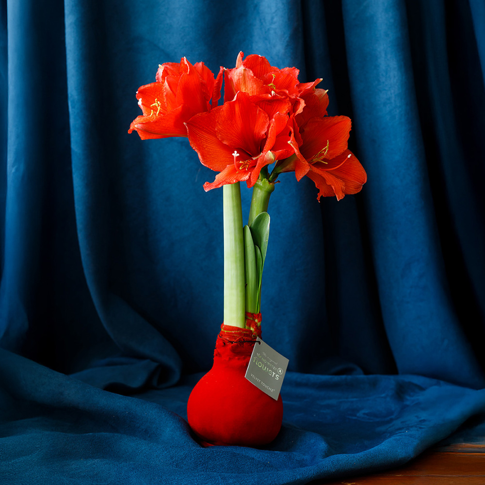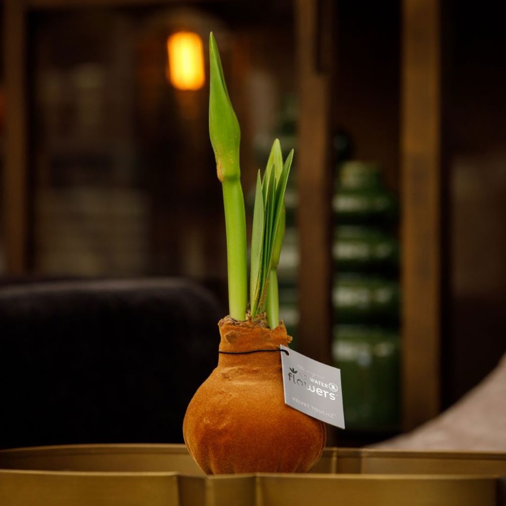 No Water Flowers® zijn een luxe, groeiend en bloeiend geschenk. Deze No Water Flowers Velvet Touchz®-variant heeft een fluwelen afwerking, waardoor de bol zacht aanvoelt en een luxueuze uitstraling krijgt. Deze speciaal geselecteerde en geteste amaryllisbollen hebben genoeg energie om zonder water te groeien en te bloeien. Authentieke No Water Flowers® geven vrij korte bloemstelen, vallen niet om en bloeien gegarandeerd. Iedere No Water Flowers® wordt zorgvuldig schoongemaakt en tot in perfectie gewaxt. Dit geeft de bloembol een eigentijdse en modieuze uitstraling.