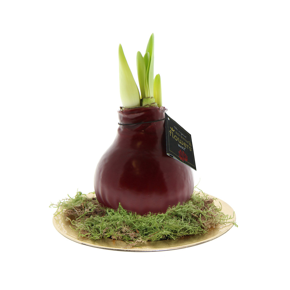 No Water Flowers® - Waxz® on golden dish, In cellofaan, Bordeaux