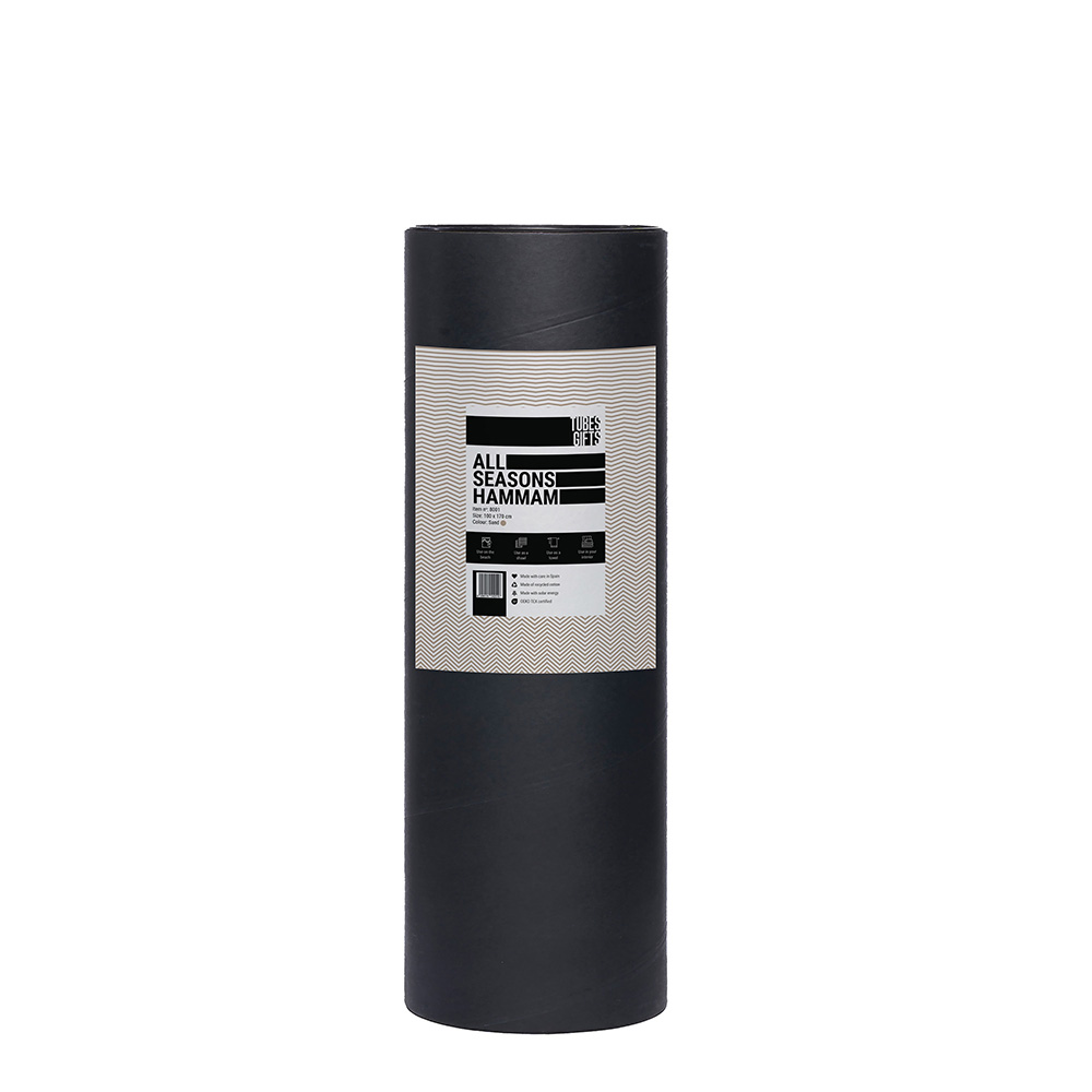 Stijlvol 4 seizoenen Hamam handdoek (100x170cm) verpakt in stoere matzwarte tube. De Hamam is licht, sneldrogend, makkelijk mee te nemen en multifunctioneel. Neem hem mee naar het strand, voor een picknick of versier je huis of je zelf ermee. Het is gemaakt van 80% gerecycled katoen en 20% polyester. Geproduceerd in Spanje. OEKO-TEX gecertificeerd (tijdens het productieproces worden er geen schadelijke (kleur)stoffen gebruikt die schadelijk zijn voor het milieu).