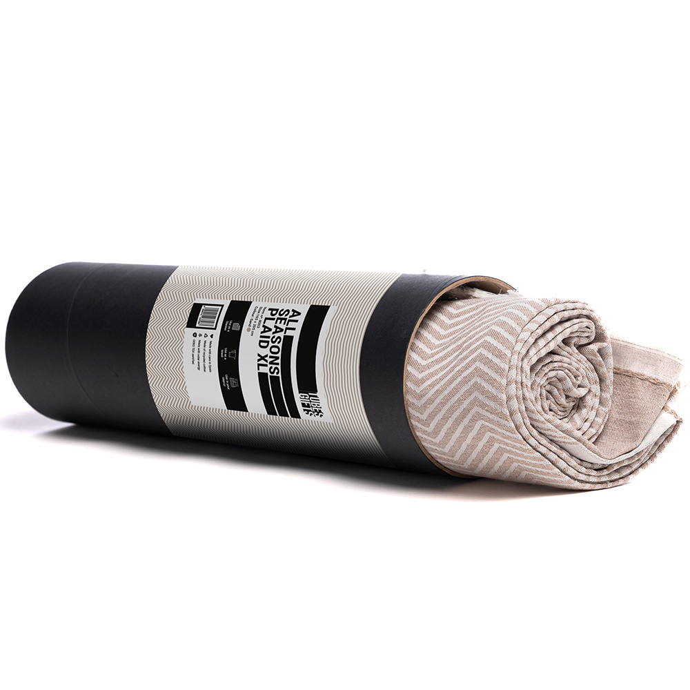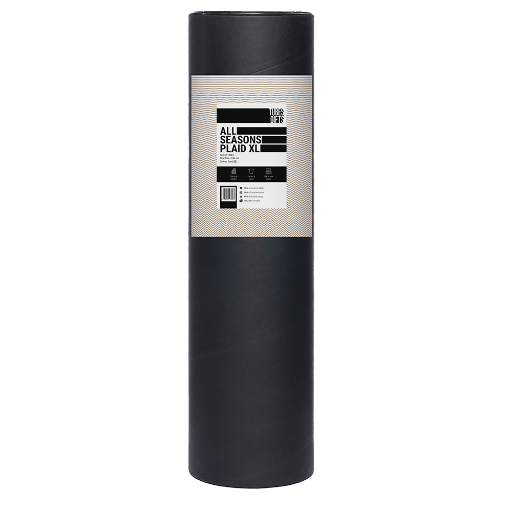 Stijlvol 4 seizoenen deken/plaid (165x205cm) verpakt in stoere matzwarte tube. Deze hoogwaardige zachte deken is multifunctioneel. Gebruik het als eye-catcher voor in het huis, als handdoek of om heerlijk onder te kruipen. Het XL formaat zorgt ervoor dat je nooit stof te kort komt. Het is gemaakt van 80% gerecycled katoen en 20% polyester. Geproduceerd in Spanje. OEKO-TEX gecertificeerd (tijdens het productieproces worden er geen schadelijke (kleur)stoffen gebruikt die schadelijk zijn voor het milieu).