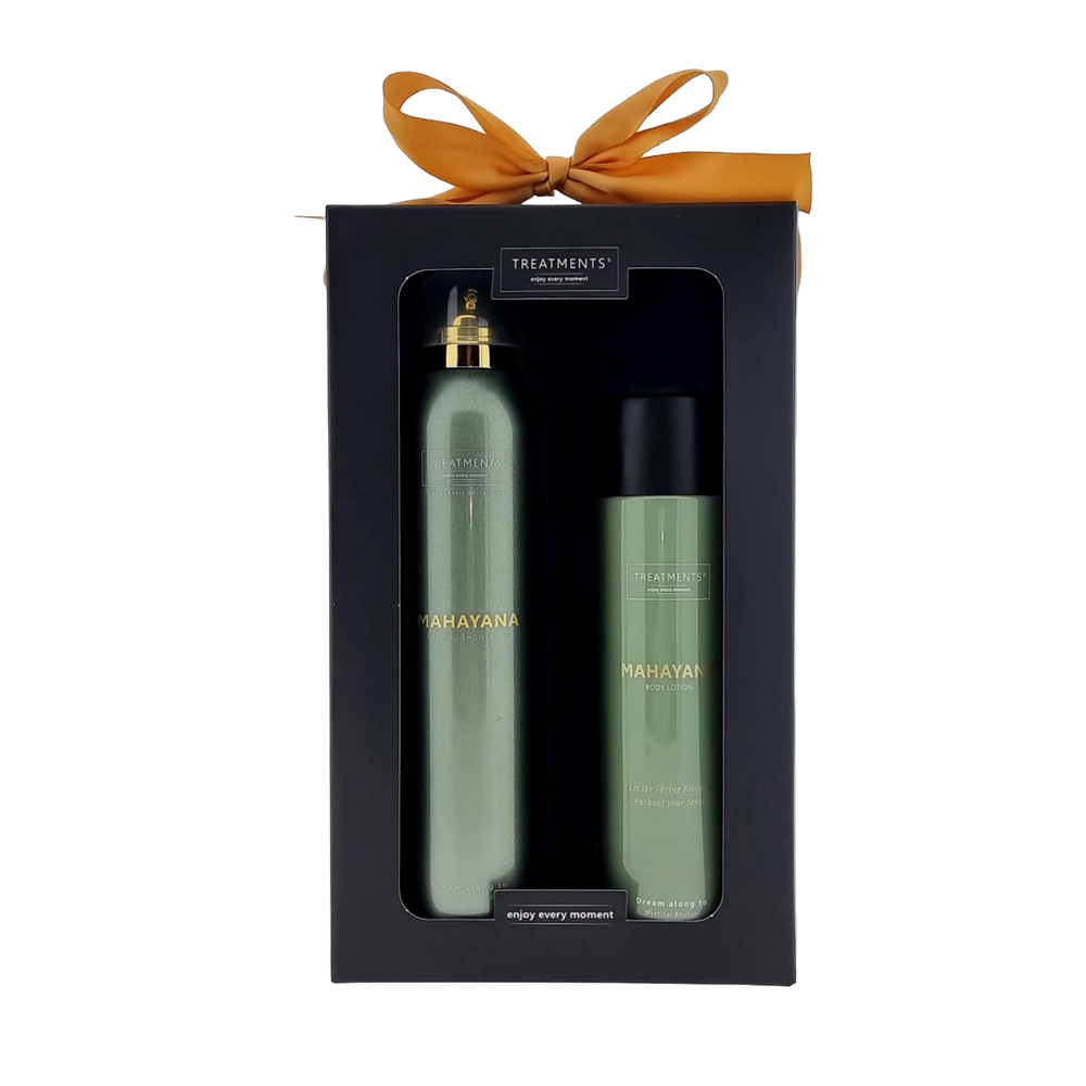 Deze Giftbox Tenderness bevat twee verzorgingsproducten met de geur Mahayana. De set bevat een