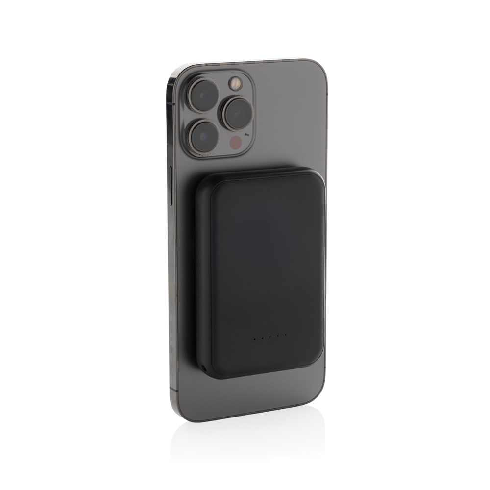 5.000 mAh powerbank van zakformaat met een 5W magnetische draadloze oplader, waarbij de behuizing is gemaakt van RCS-gecertificeerd gerecycled ABS-plastic. RCS (Recycled Claim Standard) is een norm om het gerecyclede gehalte van een product door de hele toeleveringsketen te verifiëren. Totaal gerecycled gehalte: 20% op basis van het totale productgewicht. Met USB A en USB C output opties. De powerbank bevat een duurzame grade A 5.000 mAh lithium-polymeerbatterij. De stroomindicatoren geven het resterende energieniveau aan, zodat je altijd weet wanneer je moet opladen. Type-C Input: 5V/2.4A; USB C / USB A output: 5V/2A. Het artikel en de accessoires zijn PVC-vrij. Inclusief RCS-gecertificeerde gerecyclede TPE-oplaadkabel. Verpakt in FSC® mix verpakking.