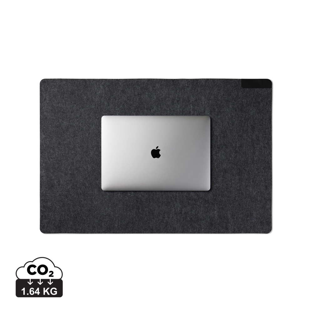 Ruime bureauonderlegger afgestemd op het hedendaagse kantoor. Ontworpen met een strakke, zuivere esthetiek en gemaakt met GRS gerecycled vilt met een gemêleerd effect. Anti-slip stippen op de achterkant zorgen voor stabiliteit, zodat de onderlegger stevig op zijn plek blijft liggen. Afmeting: 75x50cm. Gecertificeerd door GRS (Global Recycled Standard), GRS certificering garandeert dat de hele toeleveringsketen van de gerecyclede materialen gecertificeerd is. Het totale gerecyclede gehalte is gebaseerd op het totale productgewicht. Dit product bevat 89% GRS gerecycled vilt.