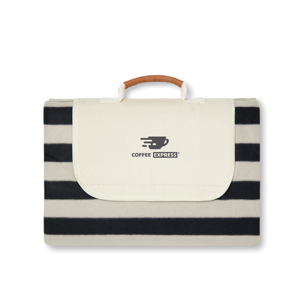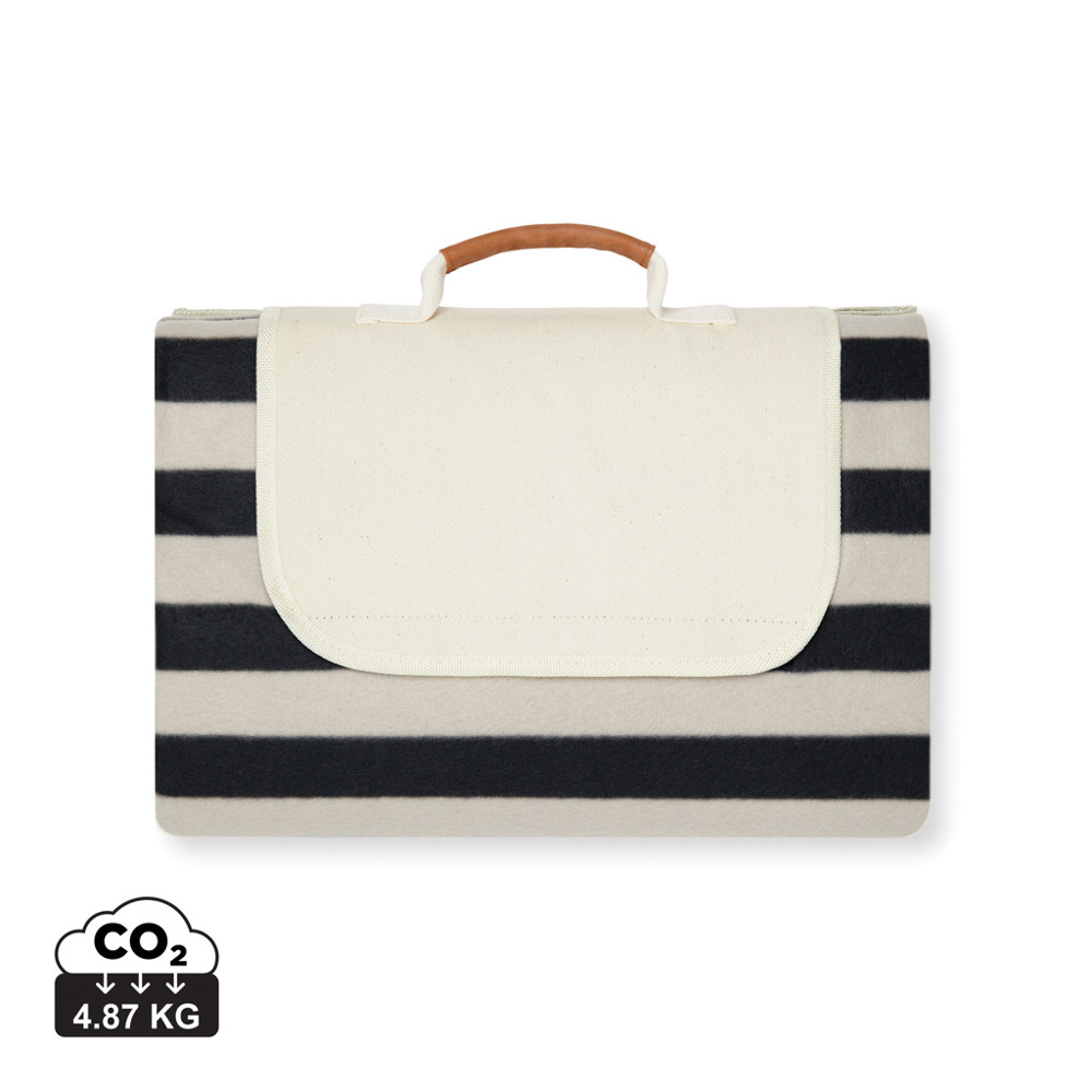 Picknickdeken van zacht fleece met katoencanvas en details van imitatieleer. Het fleecemateriaal is gemaakt van GRS-gecertificeerd rPET. De GRS-certificering garandeert een volledig gecertificeerde toeleveringsketen van de gerecyclede materialen. De achterkant is gemaakt van PEVA, dat waterafstotend is. Door de slimme constructie is de deken gemakkelijk op te vouwen en mee te nemen. Totaal gerecycled materiaal: 54% op basis van het totale gewicht van het item.