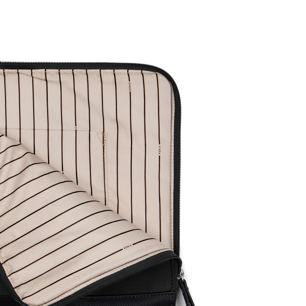 Bescherm uw laptop in stijl met deze slanke, gewatteerde sleeve. Voorzien van een extra lange ritssluiting voor gemakkelijke toegang. Binnenin bevindt zich een handig zakje voor kleinere items. Let op: De weergegeven afmetingen kunnen verschillen van de afmetingen van de laptop. De Marlow-serie is vervaardigd van gerecycled imitatiesuède met PU-details en een voering van gerecyclede polyester. Afgewerkt met strakke zilveren hardware. Gecertificeerd volgens RCS (Recycled Claim Standard), waarbij de RCS-certificering garandeert dat de gehele toeleveringsketen van gerecyclede materialen is gecertificeerd. Het totale gerecyclede gehalte is gebaseerd op het totale productgewicht. Dit product bevat 49% RCS-gecertificeerde gerecyclede polyester en 3% RCS-gecertificeerd gerecycled polyurethaan.