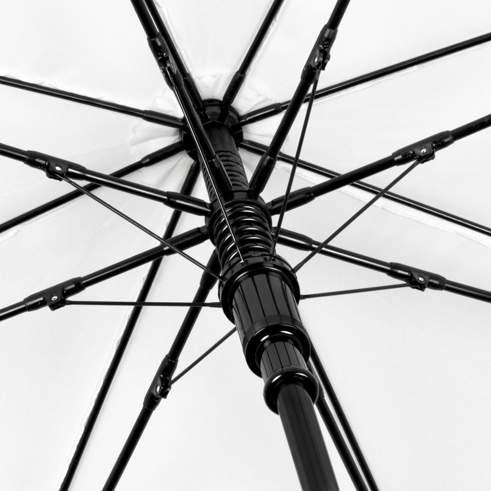 GP-58 FALCONE golfparaplu, automaat, windproof, 14 mm stok, zwart glasfiber frame, polyester pongee doek en zwart rubber gecoat handvat, met een opening aan de onderkant om uw eigen doming toe te voegen.