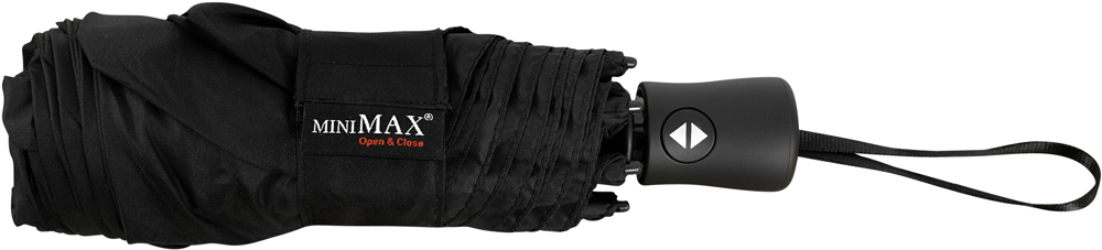 LGF-425 MINIMAX opvouwbare paraplu, windproof, 7 banen, light weight polyester pongee doek v.v. Teflon coating, automatisch open en close systeem, 4 delige metalen stok,5 delig glasfiber frame, zwart kunststof handvat, met foedraal.