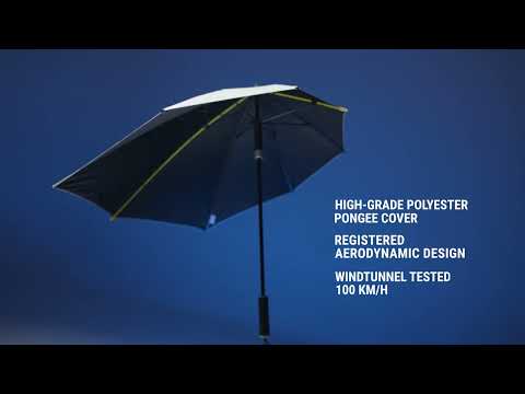 De STORMaxi stormparaplu staat voor duurzaamheid. Het is natuurlijk slim om in een ontwerp niet meer materiaal te gebruiken dan je eigenlijk nodig hebt. Met deze woorden wordt de STORMaxi door het VARA TV-programma KASSA geprezen om zijn efficiënte materiaalgebruik. Daarnaast blijft de paraplu heel in extreme weersomstandigheden. De STORMaxi is naast een effectieve dus ook een zeer duurzame stormparaplu. STORMaxi aërodynamische stormparaplu. Deze paraplu is getest in een windtunnel en trotseert gemakkelijk windsnelheden tot 100 km/h. zwarte stok, glasfiber frame met versterkte scharnierpunten, zwart handvat, met foedraal. De aërodynamische stormparaplu met de brede achterkant voor maximale bescherming tegen regen..