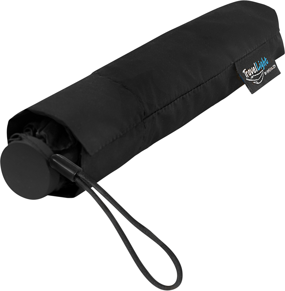 TU-2-PMS19-4026 TPX MINIMAX TravelLight extreem lichte opvouwbare reisparaplu, 105 gram, windproof, 6 banen, 3-delig, 8 mm zwarte aluminium stock, zwart frame, diam. ca. 90 cm, light weight polyester pongee doek en zwart handvat.