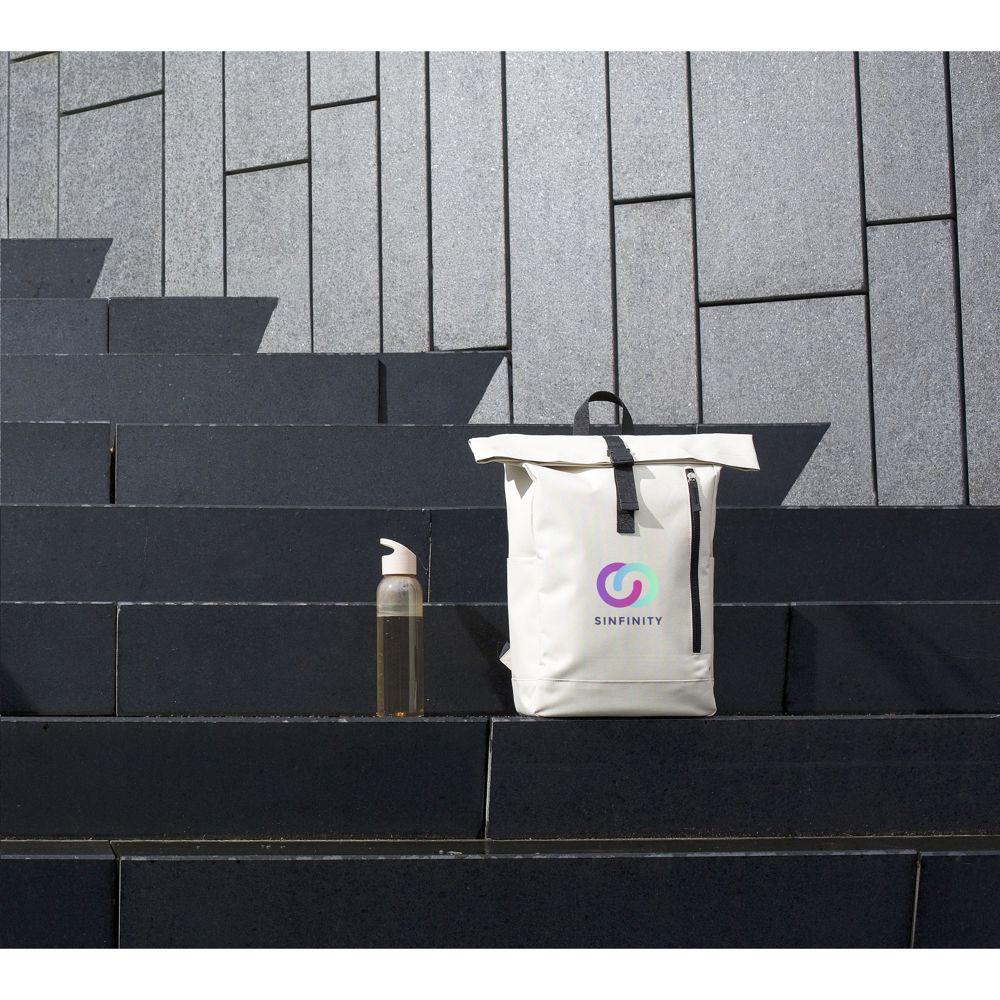 Stoere, praktische urban ‘roll-top’ rugzak van sterk 600D polyester met waterbestendige PVC binnenzijde, gedeeltelijk nylon gevoerd. De rugzak heeft één groot binnenvak, een insteekvak aan beide zijdes en een groot ritsvak aan de voorzijde. Met foam rugzijde voor meer draagcomfort, gewatteerde, en verstelbare schouderriemen. Met draaglus en een rolsluiting met kliksysteem aan de bovenzijde. De perfecte tas voor dagelijks gebruik. Inhoud ca. 18 liter.