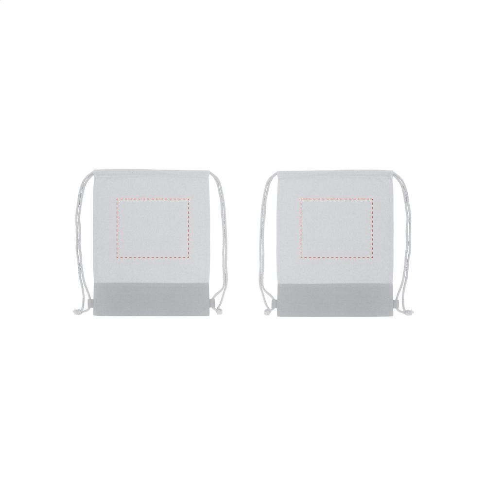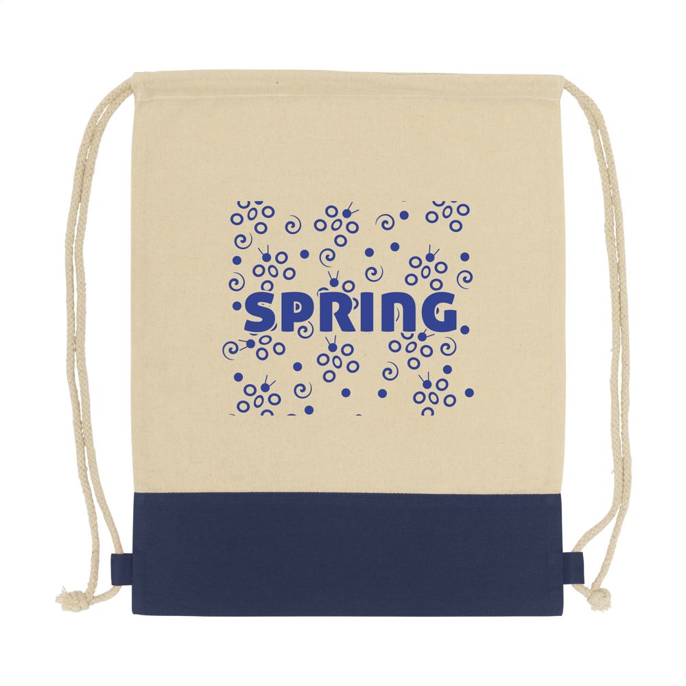 Rugzak met aanrijgkoorden van 100% katoen (125 g/m²) en een inzet in kleur. Inhoud ca. 8 liter.