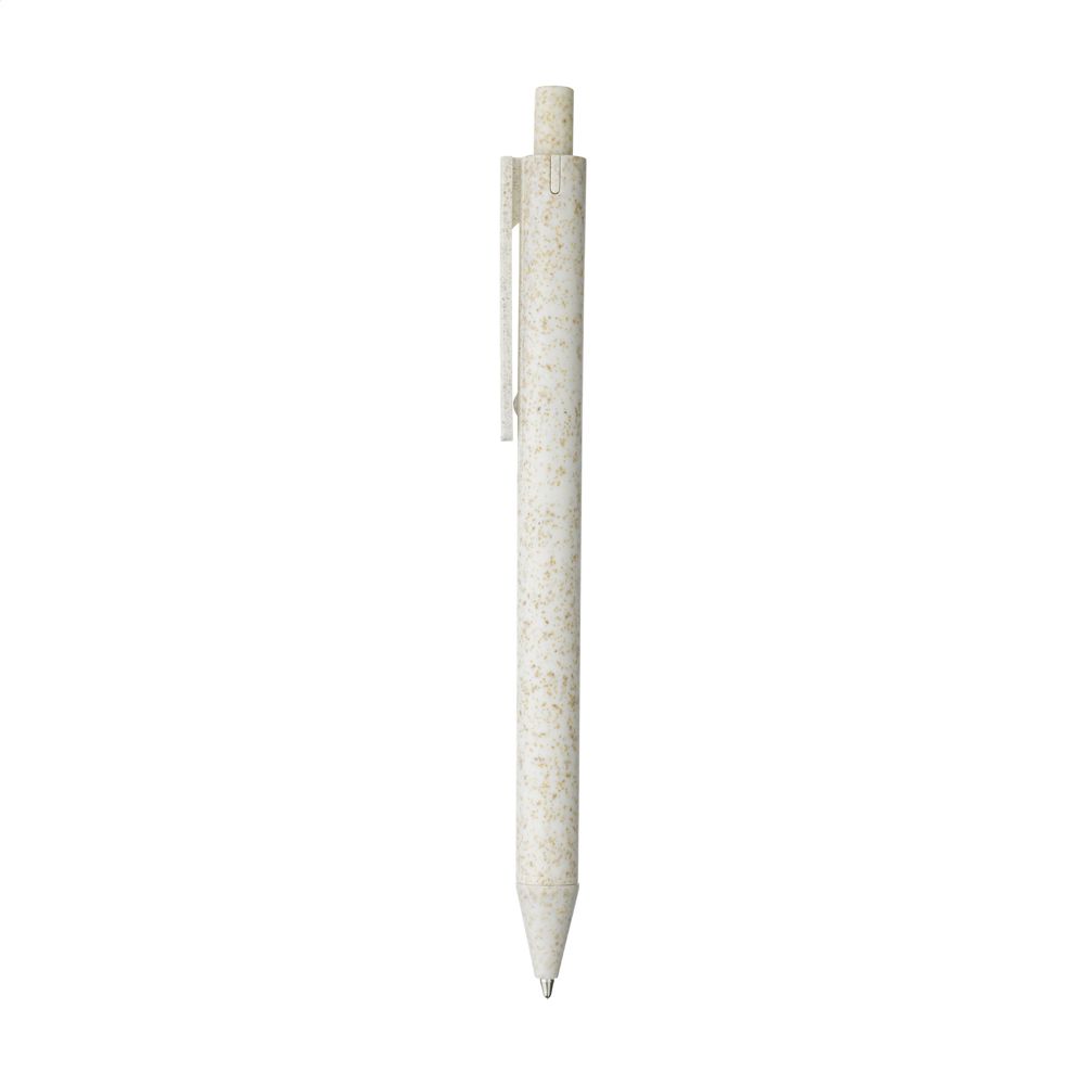 Blauwschrijvende balpen gemaakt van 50% PP en 50% tarwestro. De houder, clip en drukknop zijn gemaakt van hetzelfde materiaal en de gehele pen is stijlvol uitgevoerd in één kleur. Gedeeltelijk biologisch afbreekbaar.