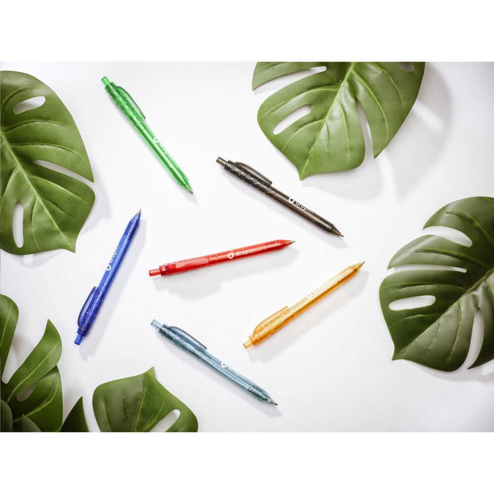 Blauwschrijvende balpen met transparante houder van 100% gerecycled PET uit gerecyclede PET-flessen. GRS-gecertificeerd.