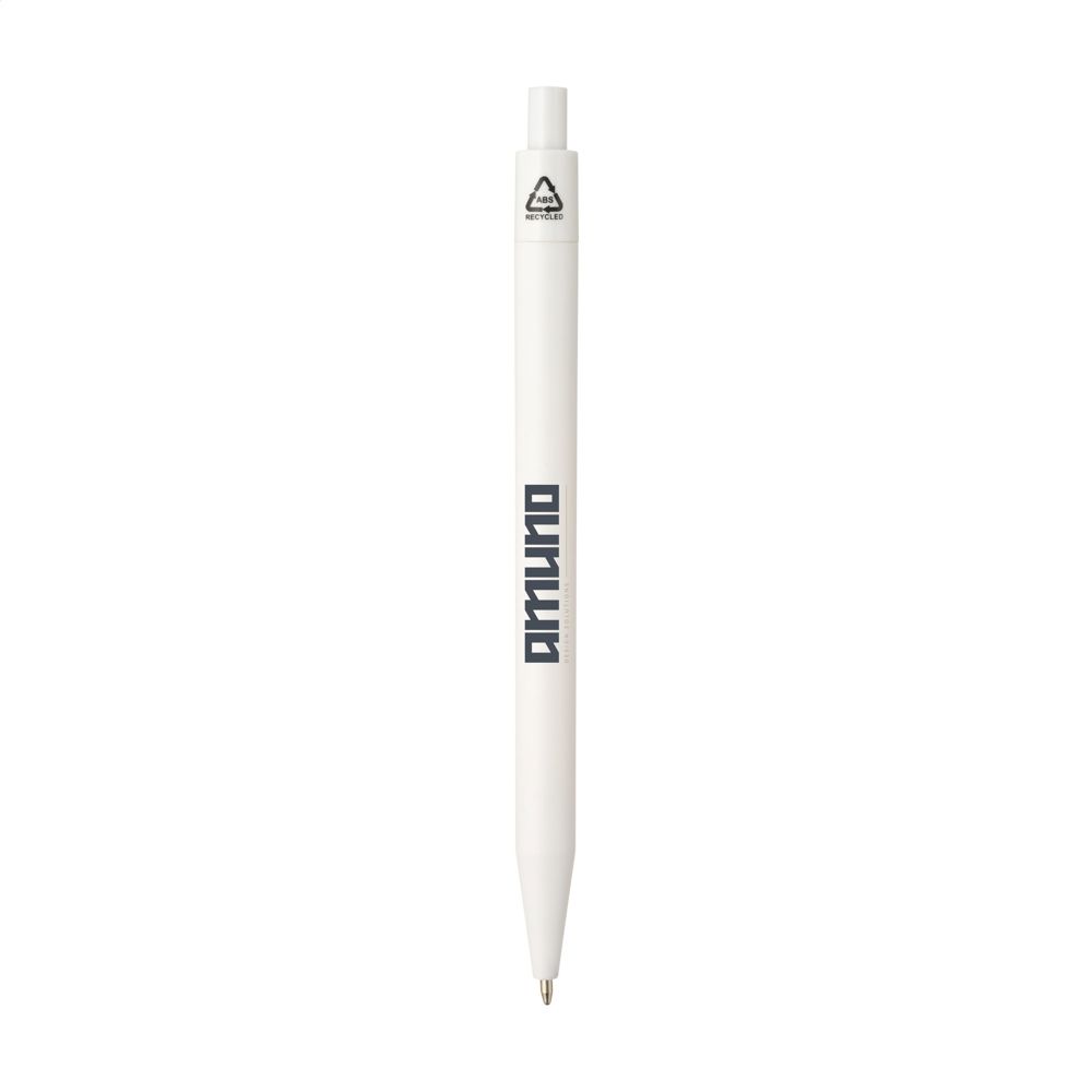 Blauwschrijvende balpen met een strak gevormde houder van 100% GRS-gecertificeerd gerecycled ABS. Met een royale clip voor een opvallende opdruk. GRS-gecertificeerd. Totaal gerecycled materiaal: 83%.