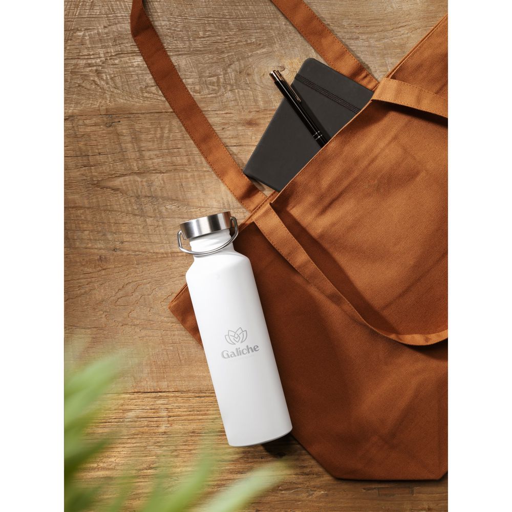 Enkelwandige, lekvrije waterfles met schroefdop en draagring. Gemaakt van gerecycled RVS. Niet vaatwasserbestendig. RCS-gecertificeerd. Totaal gerecycled materiaal: 75%. Inhoud 800 ml. RVS kan vele malen gerecycled worden terwijl de kwaliteit van het materiaal grotendeels behouden blijft. Door het gebruik van gerecycled RVS worden minder nieuwe grondstoffen gebruikt. Dit betekent minder energieverbruik en minder gebruik van water. Een verantwoorde keuze. Per stuk verpakt.