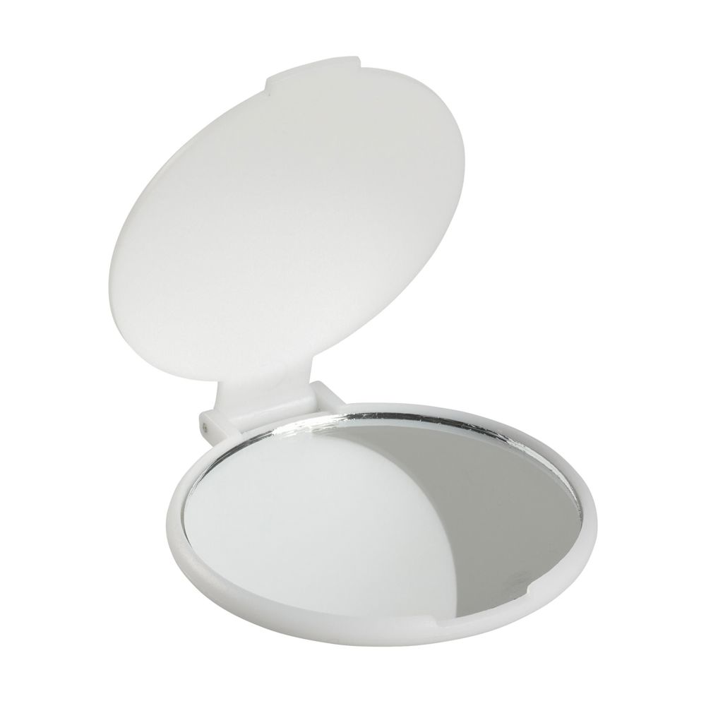 Spiegeltje in kunststof houder met beschermklepje.
