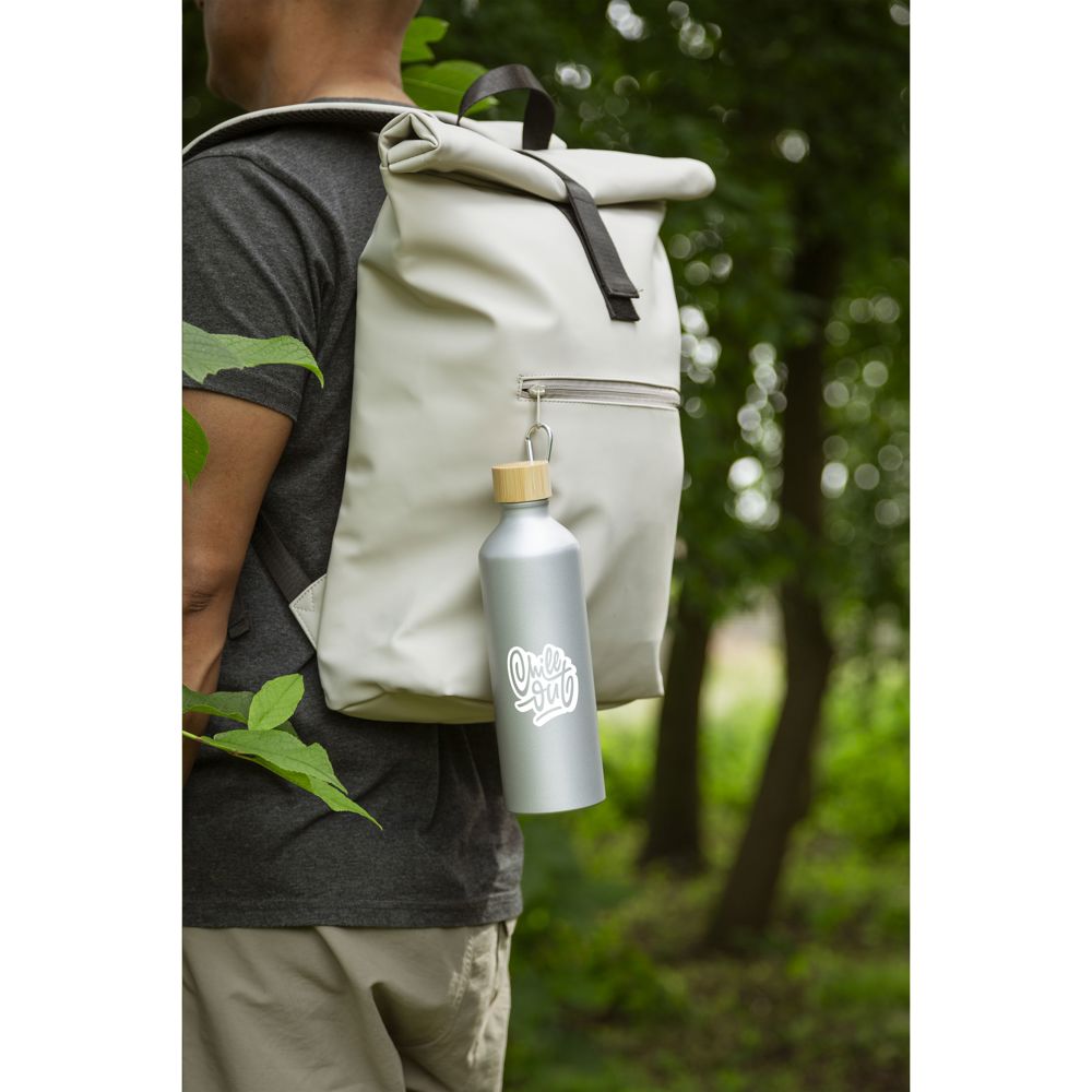 Enkelwandige waterfles van gerecycled RVS. Met bamboe schroefdop en een aluminium karabijnhaak waarmee je de fles gemakkelijk aan je tas of rugzak bevestigt. De karabijnhaak is niet geschikt als klimgereedschap. Deze ideale lichtgewicht fles neem je overal mee naar toe. Alleen geschikt voor koud water. Lekvrij. Niet vaatwasserbestendig. RCS-gecertificeerd. Totaal gerecycled materiaal: 90%. Inhoud 750 ml. RVS kan vele malen gerecycled worden terwijl de kwaliteit van het materiaal grotendeels behouden blijft. Door het gebruik van gerecycled RVS worden minder nieuwe grondstoffen gebruikt. Dit betekent minder energieverbruik en minder gebruik van water.