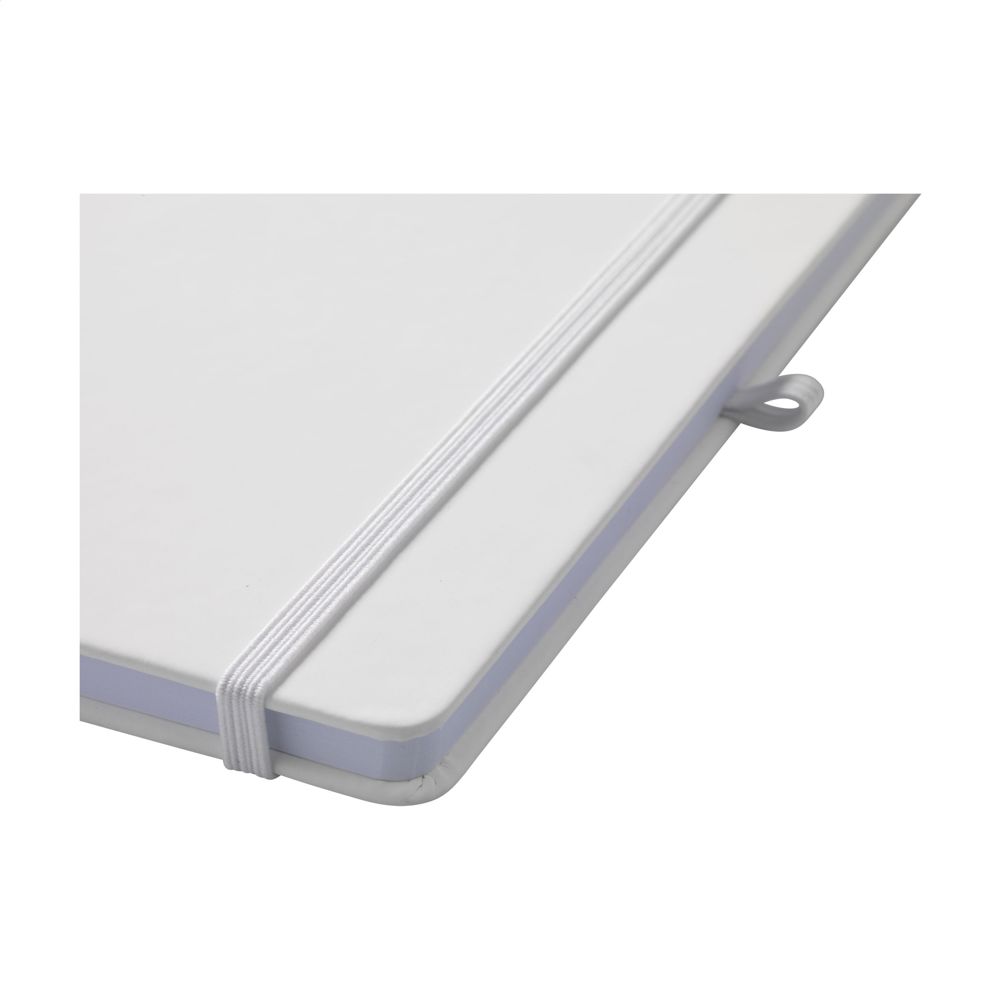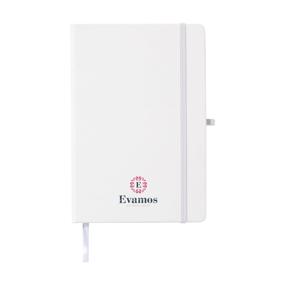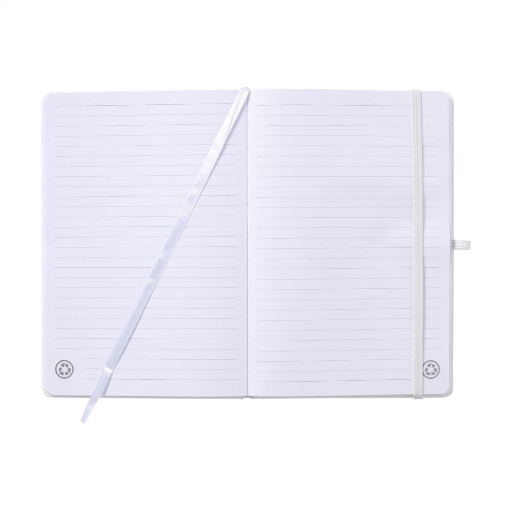 Notitieboek in A5-formaat met hardcover van gerecycled PU en ca. 96 vel/192 pagina's wit, gelinieerd, GRS-gecertificeerd papier (70 g/m²). Met gebonden rug, sluitelastiek en zijden leeslint. GRS-gecertificeerd. Totaal gerecycled materiaal 93%.