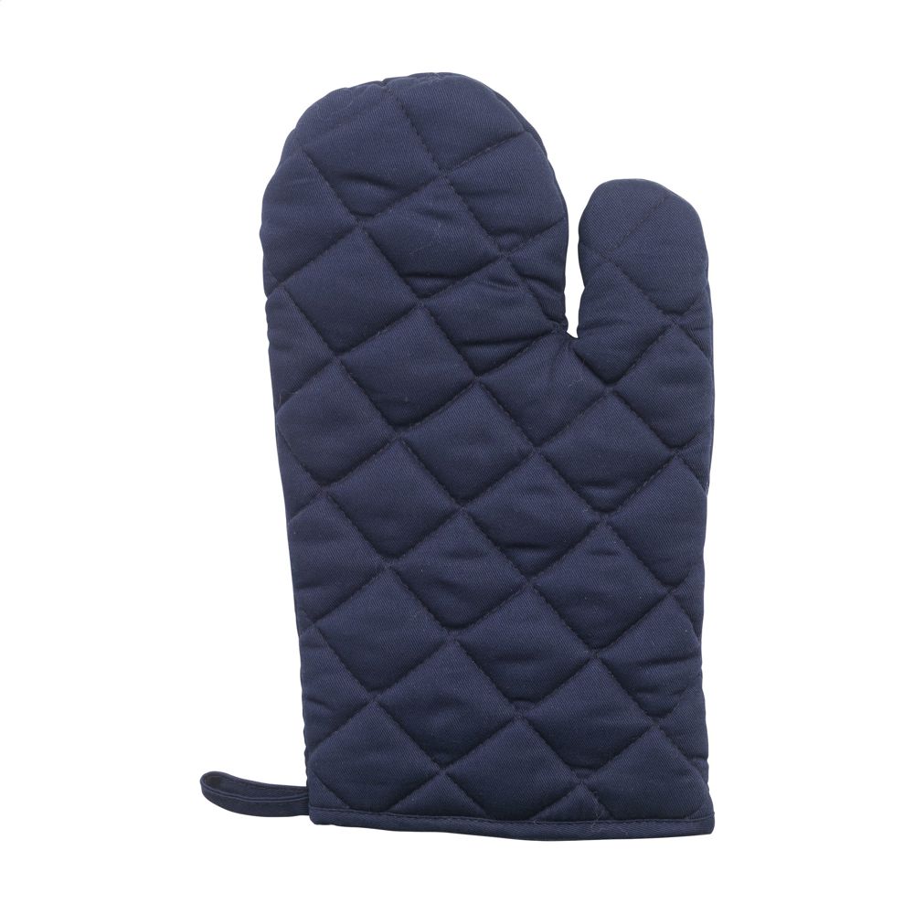 Dikke, gewatteerde ovenwant gemaakt van pre-consumer gerecycled katoen (90 g/m²). Met isolerende polyester vulling en een voering van katoen, viscose en lyocell. Dit biedt goede bescherming tegen hitte bij het hanteren van hete ovenschalen of pannen. Met een gewatteerde zijkant en ophanglus. RCS-gecertificeerd. Totaal gerecycled materiaal: 30%.