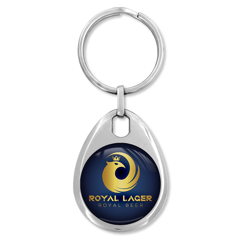 Ronde, hoogglans, nikkelen sleutelhanger met zwart metalen inlay en stevige sleutelring. Chic en exclusief. Per stuk verpakt.