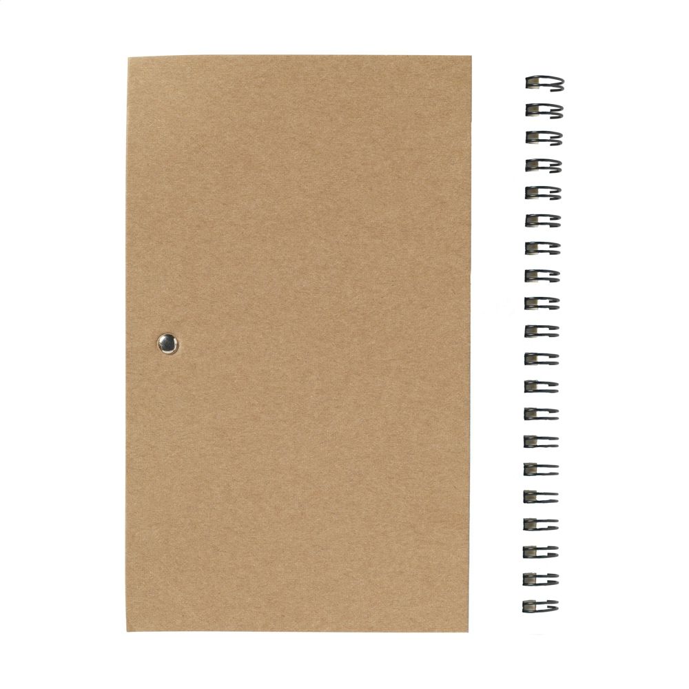 Notitieboekje van gerecycled materiaal met ca. 70 vel/140 pagina's crèmekleurig, gelinieerd papier (70 g/m²) en kartonnen omslag. Gebonden in een sterke, metalen wire-o-binding. Incl. blauwschrijvende balpen. FSC Mix gecertificeerd.
