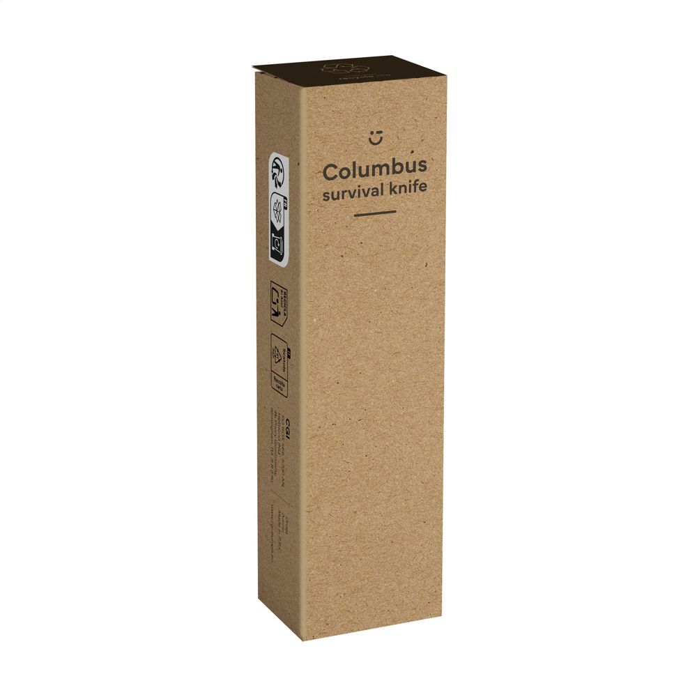 Robuust RVS survivalmes met lemmet voorzien van vlijmscherpe kartelrand, houten inleg in de handgreep en handige bevestigingsclip. Op het bezit en/of dragen van messen of multitools in het openbaar kunnen lokale regels van toepassing zijn. Per stuk in kraft doos.