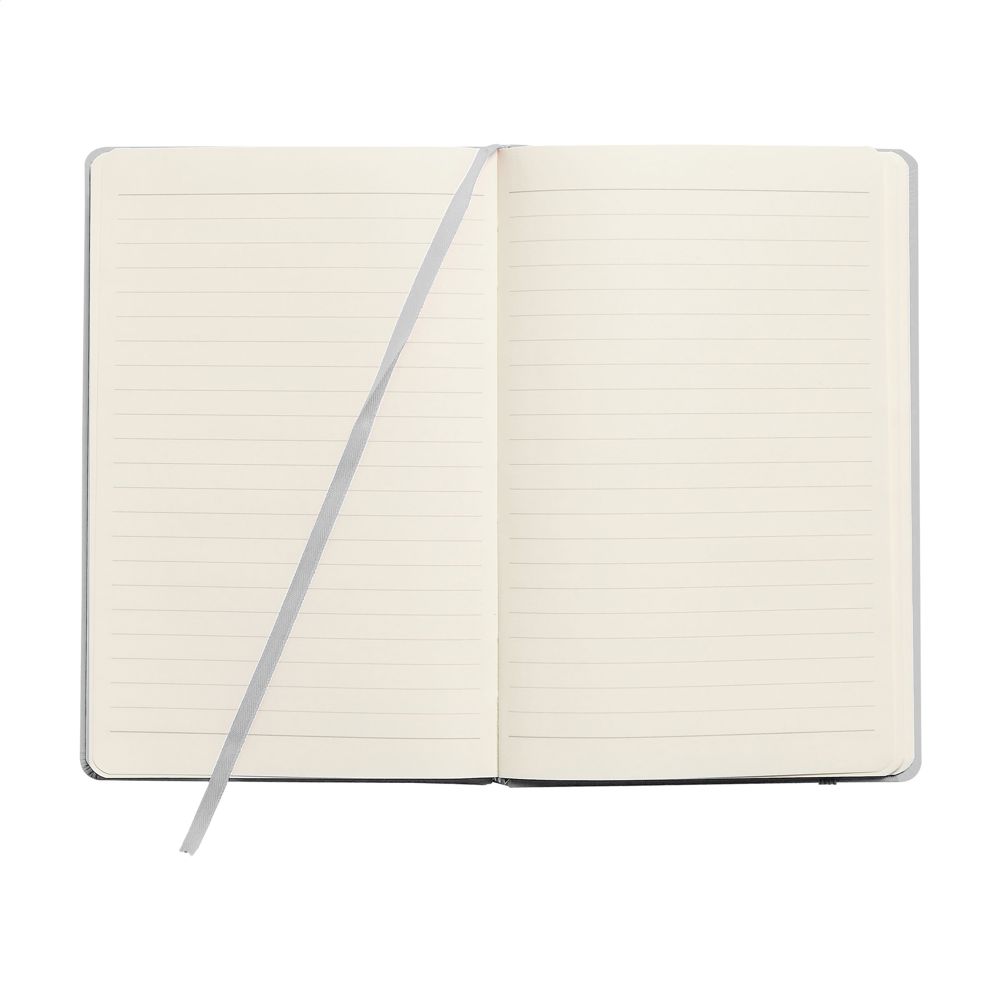 Notitieboek in A5-formaat. Met ca. 96 vel/192 pagina's crèmekleurig, gelinieerd FSC Mix gecertificeerd papier (80 g/m²). Met gebonden rug, harde kaft, sluitelastiek en zijden leeslint.