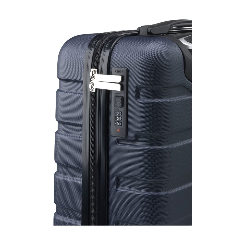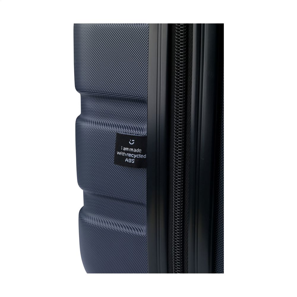 Trendy, lichtgewicht trolley. De buitenzijde is van 100% GRS-gecertificeerd gerecycled ABS. De binnenzijde is gevoerd met gerecycled 210D polyester. Met ruim hoofdvak, 4 zwenkwielen, uitschuifbare handgreep en cijferslot. GRS-gecertificeerd. Totaal gerecycled materiaal: 52%. Inhoud ca. 30 liter.