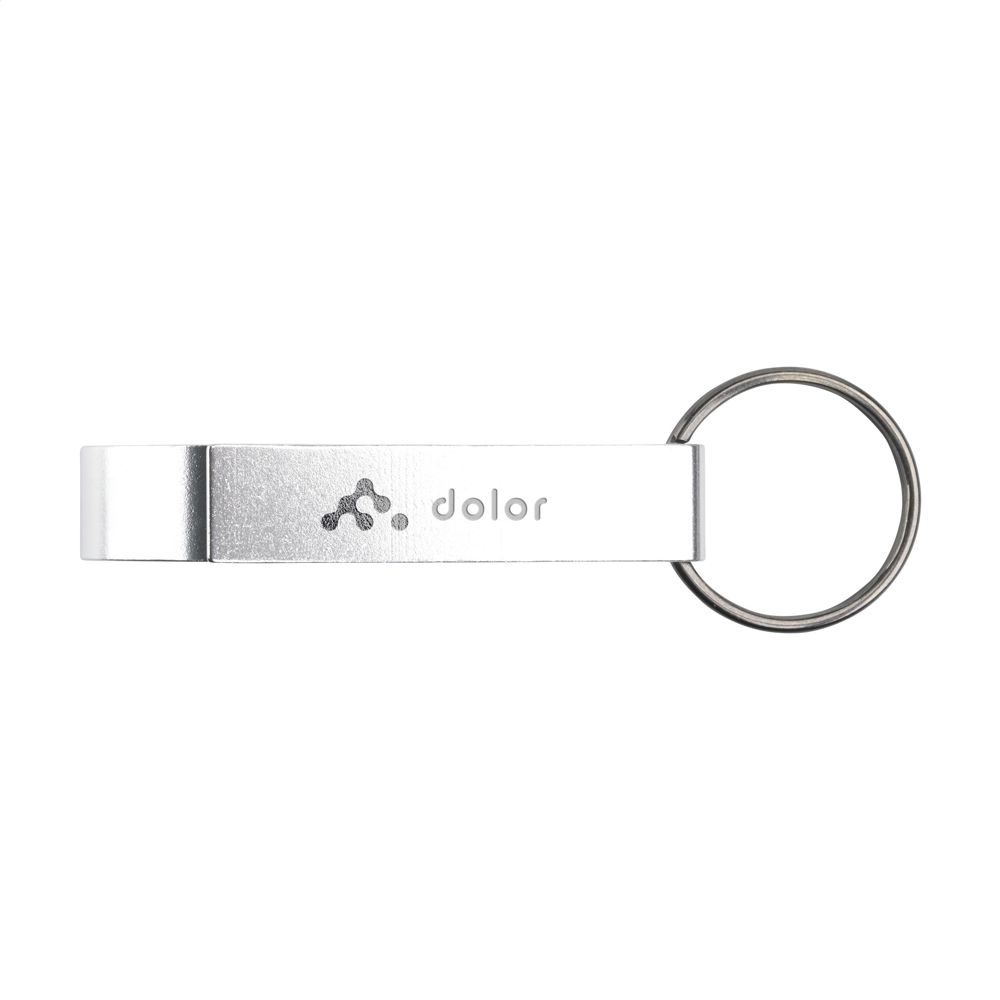 Sleutelhanger met lichtgewicht opener van gerecycled alumininium. GRS-gecerticeerd. Totaal gerecycled materiaal: 79%. Door het gebruik van gerecycled aluminium worden er minder nieuwe grondstoffen gebruikt tijdens de productie van dit product. Dit betekent minder energieverbruik en minder gebruik van water.