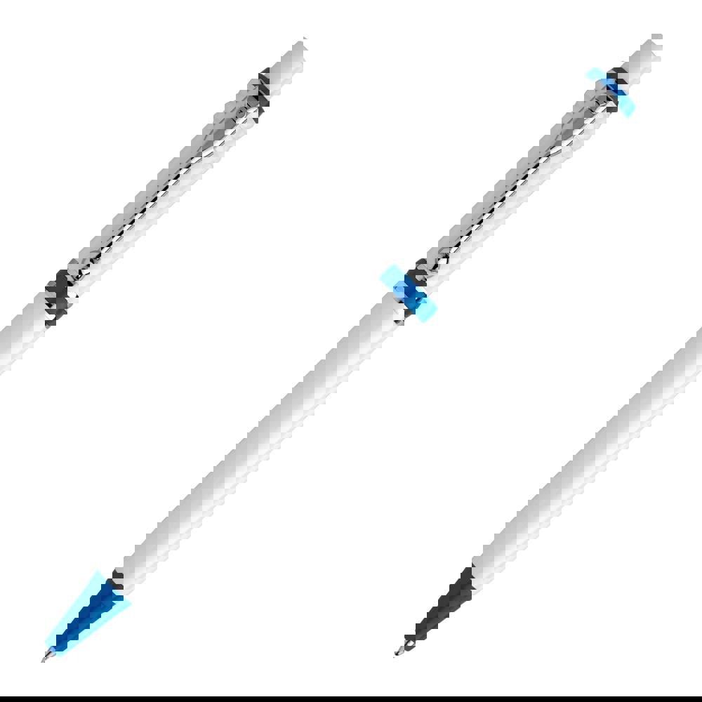 WoW! De houder en de dop van deze blauwschrijvende balpen zijn gemaakt van strak opgerold, gerecycled papier.