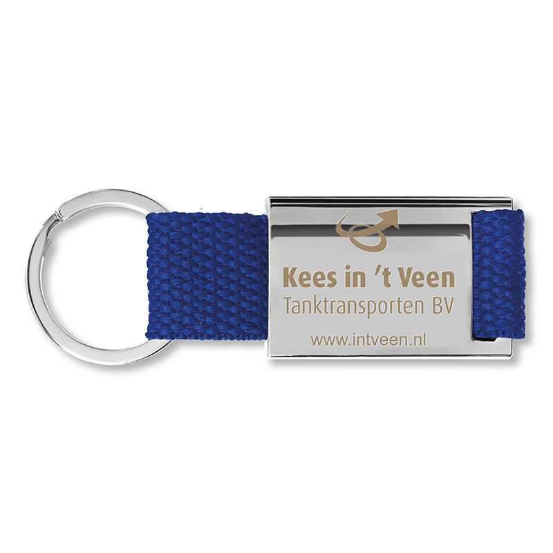 We kunnen een lintje of polifilm met jullie logo aan de sleutelhanger voorzien.