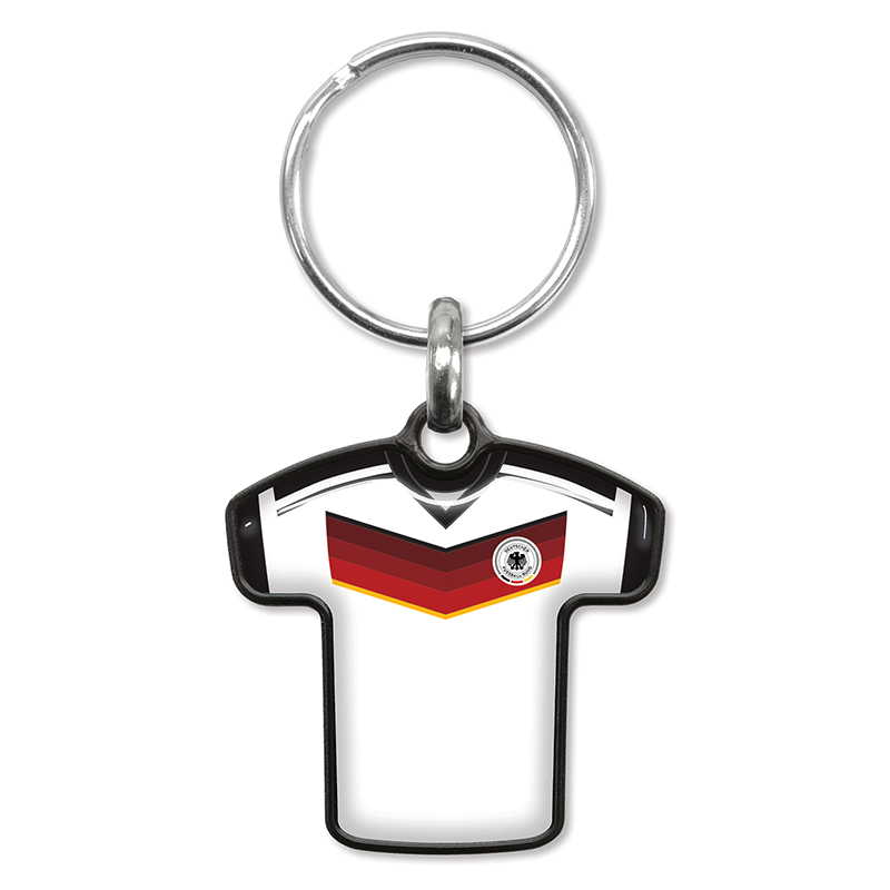 Leuke sleutelhanger gemaakt van gekleurd kunststof in de vorm van een t-shirt. Deze hanger wordt aan een zijde voorzien van een fraaie dominglabel met het formaat 34 x 32 mm. De keuze uit kleuren voor de hanger bestaat uit: wit of zwart. Deze hanger is bij uitstek geschikt om je club-tenue of uniform te laten zien.