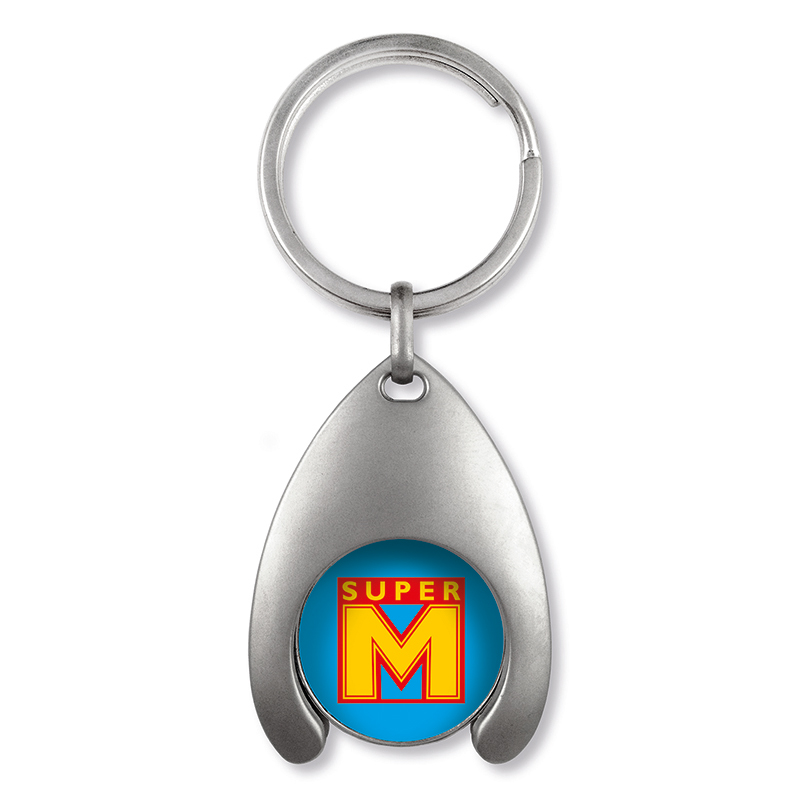 Zilveren sleutelhanger met flessenopener eraan. Op het vlakke stuk op de hanger kan een dominglabell bevestigd worden met een formaat van 42,3 x 9,3 mm. Een populair relatiegeschenk omdat het vaak onder de aandacht komt bij mensen!