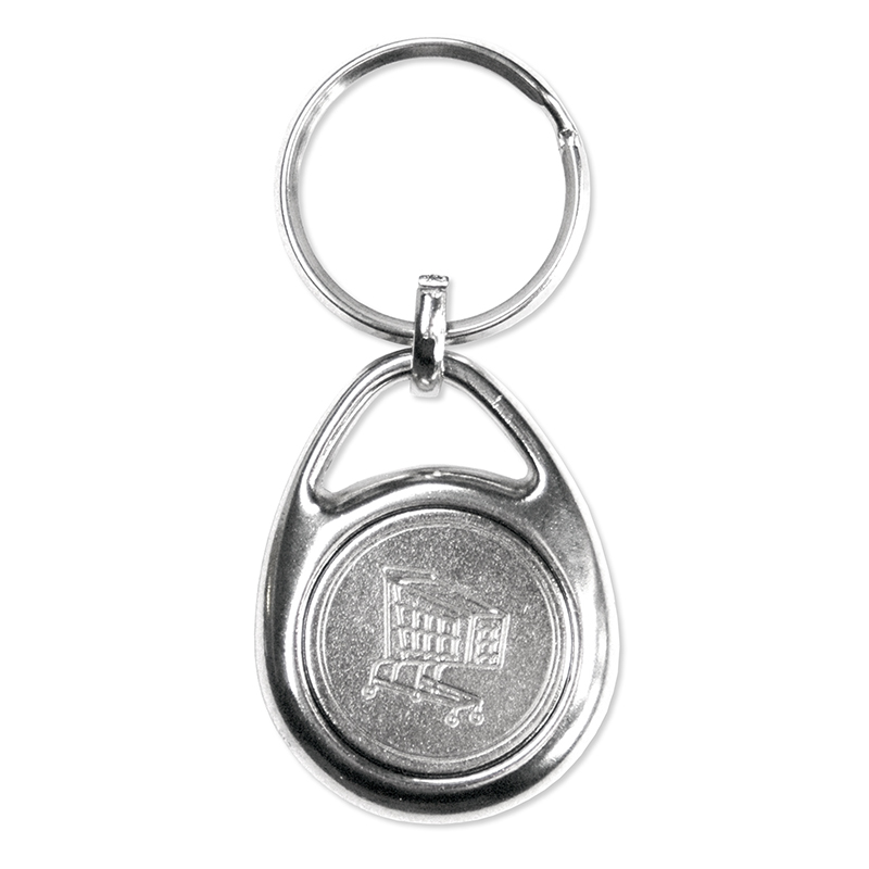 Robuuste Metalen sleutelhanger in ronde vorm met een winkelwagenmunt met magneet in de achterzijde verwerkt. Op die manier kun je het muntje gemakkelijk eruit pakken en gebruiken om je winkelwagentje te ontgrendelen. Om het geheel af te maken is er een mooie doming gemonteerd aan de voorkant van het formaat Ø 23 mm. Door de compacte vorm van de opener is deze sleutelhanger geen bezwaar om je sleutelbos te hangen.