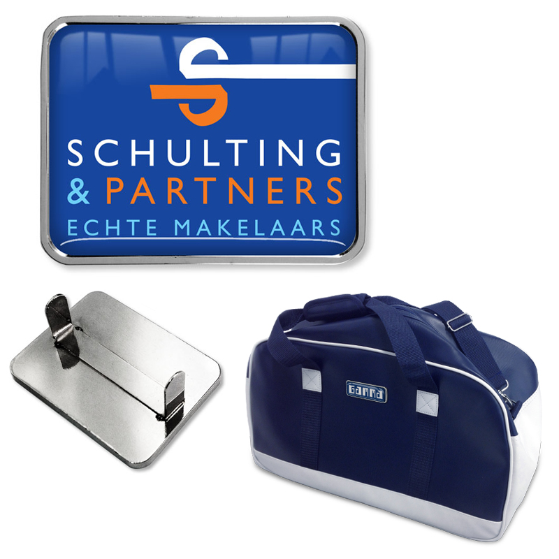 De ideale oplossing om tassen van een dominglabel te voorzien. Metalen badge met een full colour bedrukking. Drukformaat 40 x 30 mm.