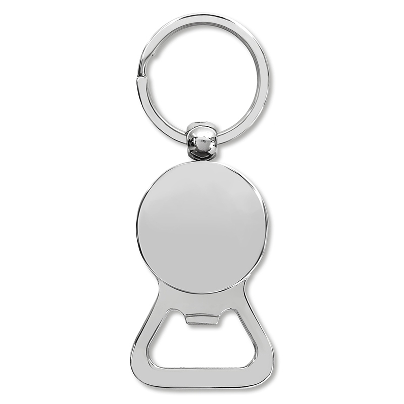 Deze sleutelhanger scoort altijd! De zilveren sleutelhanger heeft een flessenopener en is voorzien van een mooie dominglabel aan een zijde met het formaat Ø 25,4 mm. Deze hanger is robuust, maar is tegelijkertijd zeer fijn afgewerkt.