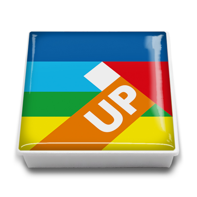 Vierkante Memo-Magneet van kunststof, voorzien van een fantastische full colour dominglabel met formaat 35 x 35 mm. Een andere mogelijkheid is om de kunststoffen magneet zelf aan de bovenzijde te bedrukken met hoogwaardige UV-inkten. De magneten zelf zijn in meerdere kleuren verkrijgbaar. Informeer naar ons assortiment. Magneten met uw reclame erop, dat blijft wel hangen!