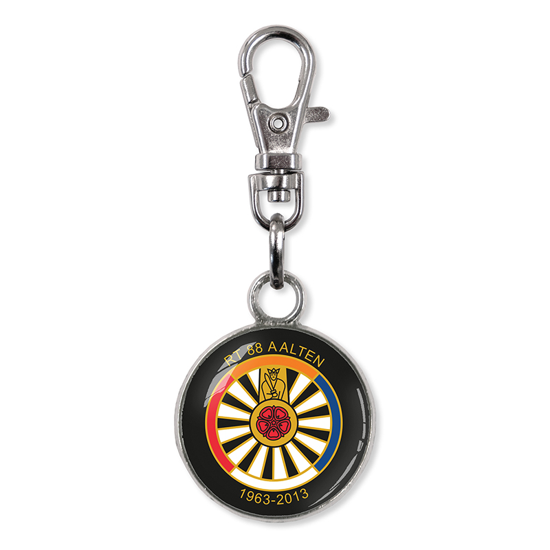 Deze metalen ronde luxe zipper puller valt extra op bij jouw clubtenue of bedrijfskledij. De zipperpuller wordt geleverd inclusief enkelzijdige dominglabel. Drukformaat Ø 20 mm