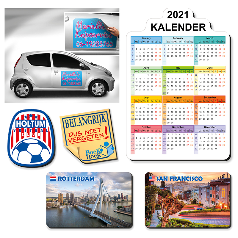 Een magneet volledig in eigen vorm, bedrukt met hoogwaardige inkten? Dat kan! Magneetfolie wordt volautomatisch in iedere gewenste vorm gesneden. De dikte van het materiaal is 1 mm en de toplaag die in full colour kan worden bedrukt, is spierwit. Bestelling vanaf 50 stuks. Vraag naar de vele mogelijkheden.