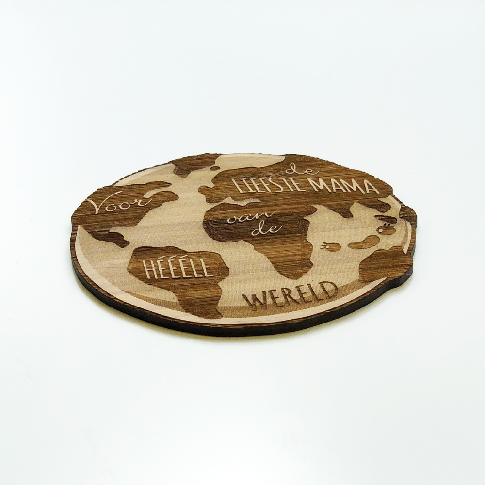 Gesprekstof tijdens een drankje? Laat je mooiste onderzetters van 3 mm hout maken met je eigen spraakmakende boodschap erop. In jouw eigen vorm of met een superfijne gravure erin te realiseren. Past volledig in de trend van duurzaam en eco producten. Gaat lang mee en ziet er ook nog eens zeer speciaal uit. De standaard onderzetters van hout hebben een diameter 95 mm.