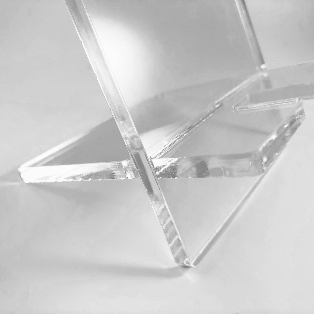 Geef een functioneel relatiegeschenk cadeau! In deze digitale wereld wordt iedere dag ontzettend vaak door mensen op de mobiel gekeken. Een telefoonstandaard op het bureau is een echte blikvanger. Verhoog de attentiewaarde door er logo's, reclameboodschappen of wervende teksten op te laten drukken. Deze mooie standaard is lasergesneden uit 5 mm kraakhelder plexiglas en kan eenvoudig in elkaar geschoven worden. Ongemonteerd kan dit standaardje handig in een envelop verstuurd worden. Gemonteerd heeft dit model het formaat van 134 x 80 mm, wat groot genoeg is voor de meeste telefoons. Vanzelfsprekend zijn andere formaten mogelijk.