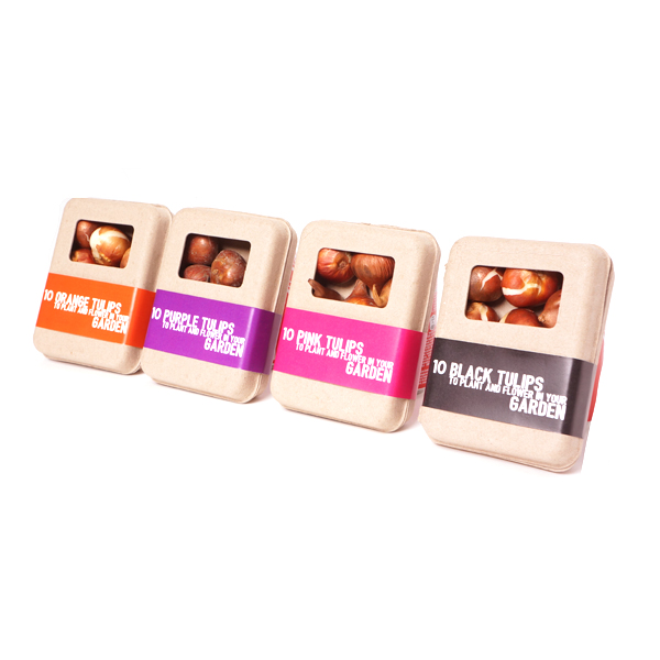 Leuke vensterdoosjes met 2 hyacinthen op kleur en eigen label.