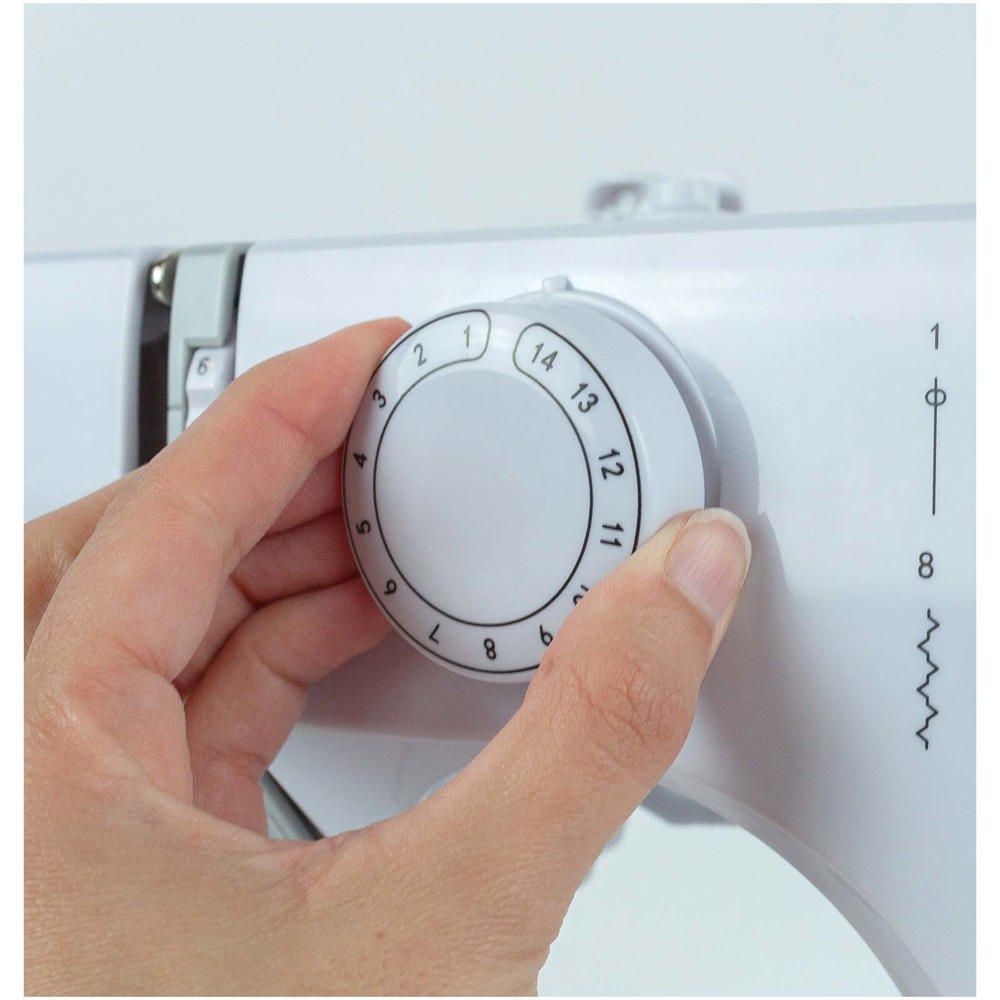 Deze naaimachine biedt 14 steekpatronen om te variren, waarbij je de breedte en lengte van elke steek kunt aanpassen. Hij bevat ook een rekbare zigzagsteek, ideaal voor breisels, zomen en afwerken. Je kunt zowel vooruit als achteruit naaien, de draad automatisch oprollen, afknippen, de draadspanning aanpassen en de steken regelen. Dankzij de directe snelkoppeling naar het spoeltje plaats je dit snel en eenvoudig.