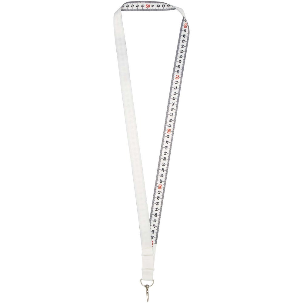 Deze 1 meter lange lanyard is gemaakt van gerecycled PET en is voorzien van een full colour sublimatieprint aan één zijde. De achterzijde heeft een opvallend meetlintdesign, wat zorgt voor een praktische en unieke uitstraling. De lanyard is uitgerust met een stevig metalen haakje en is ideaal voor het dragen van naamkaartjes, ID-kaarten of sleutels – perfect voor gebruik tijdens evenementen, op kantoor of dagelijks gebruik.