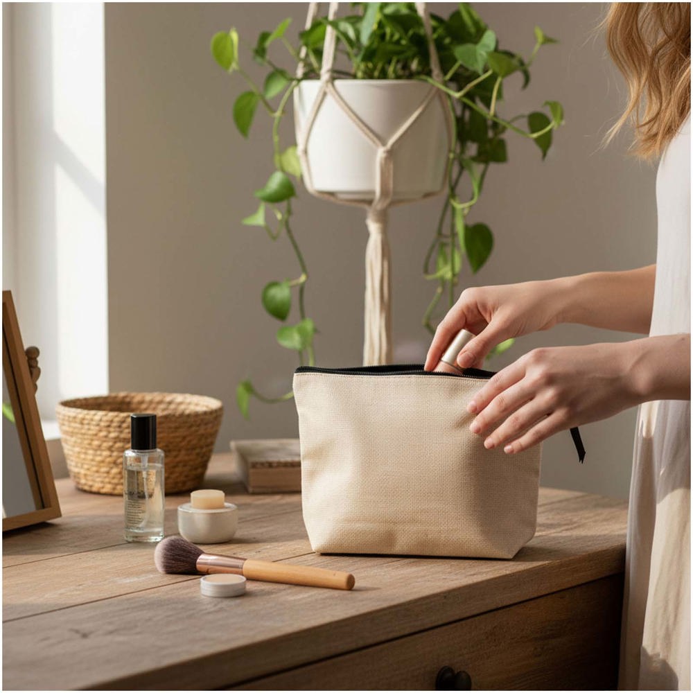 De toilettas kan volledig digitaal bedrukt worden.
